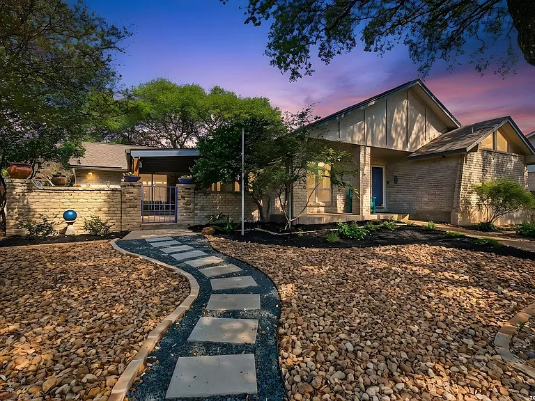 Welcome to this stunning single-story home in the highly desirable Whispering Oaks community. Offering exceptional curb appeal, mature oak trees, and outstanding outdoor living spaces, this beautifully maintained home perfectly blends comfort, style, and functionality. Inside, the home features engineered wood flooring throughout, vaulted ceilings, and abundant natural light. The spacious living room is anchored by a cozy fireplace and soaring ceilings, creating a warm and inviting atmosphere. The fully updated kitchen is truly the heart of the home-showcasing a large center island, stainless steel appliances (refrigerator, washer and dryer convey) , gas cooking, custom cabinetry, upgraded hardware, solid surface countertops, modern lighting, and a built-in desk and pantry area for added convenience. The primary suite offers a peaceful retreat with vaulted ceilings, upgraded granite countertops, and a beautifully remodeled walk-in shower. The second bathroom has been completely renovated with high-end finishes and a stunning walk-in shower, elevating the home’s modern appeal. Outdoor living is a standout feature of this property. Enjoy a covered side patio with direct access to the family room and kitchen-perfect for morning coffee or entertaining guests. The back patio is shaded by a majestic oak tree and includes a spacious storage shed. Sprinkler system with drip irrigation for all rear patio plants. Additional highlights include a true 2.5-car rear-entry garage with a dedicated workshop or storage area, plus additional parking space via the expanded alley driveway. Recent updates include a fully remodeled kitchen, renovated bathrooms, new windows and patio doors, updated flooring, HVAC less than 2 years old, kinetico water system and refreshed exterior features, making this home truly move-in ready. With its prime location near the Medical Center, USAA, parks, and shopping, this home offers an unbeatable combination of comfort, upgrades, and convenience. A rare opportunity in Whispering Oaks!